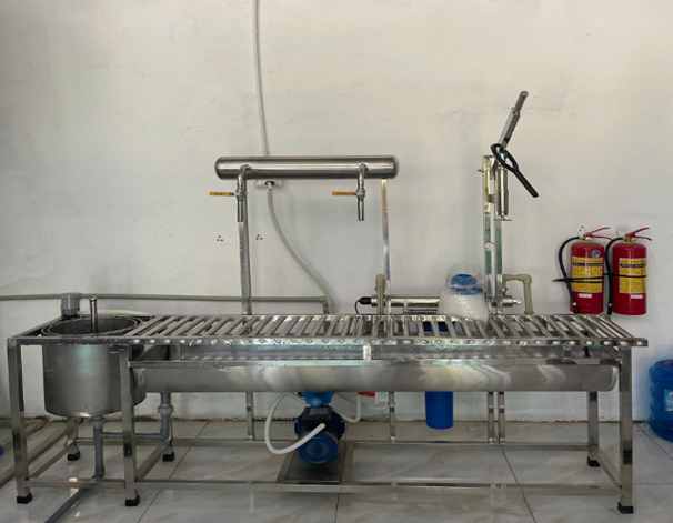 - Tên thiết bị: Bàn rửa chai và băng tải rửa chai tự động